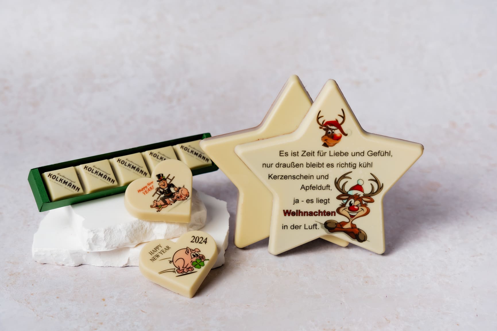 Lass dich von unseren bisherigen Schokoladenprojekten inspirieren und entdecke, wie vielseitig und individuell Firmengeschenke aus Schokolade sein können.