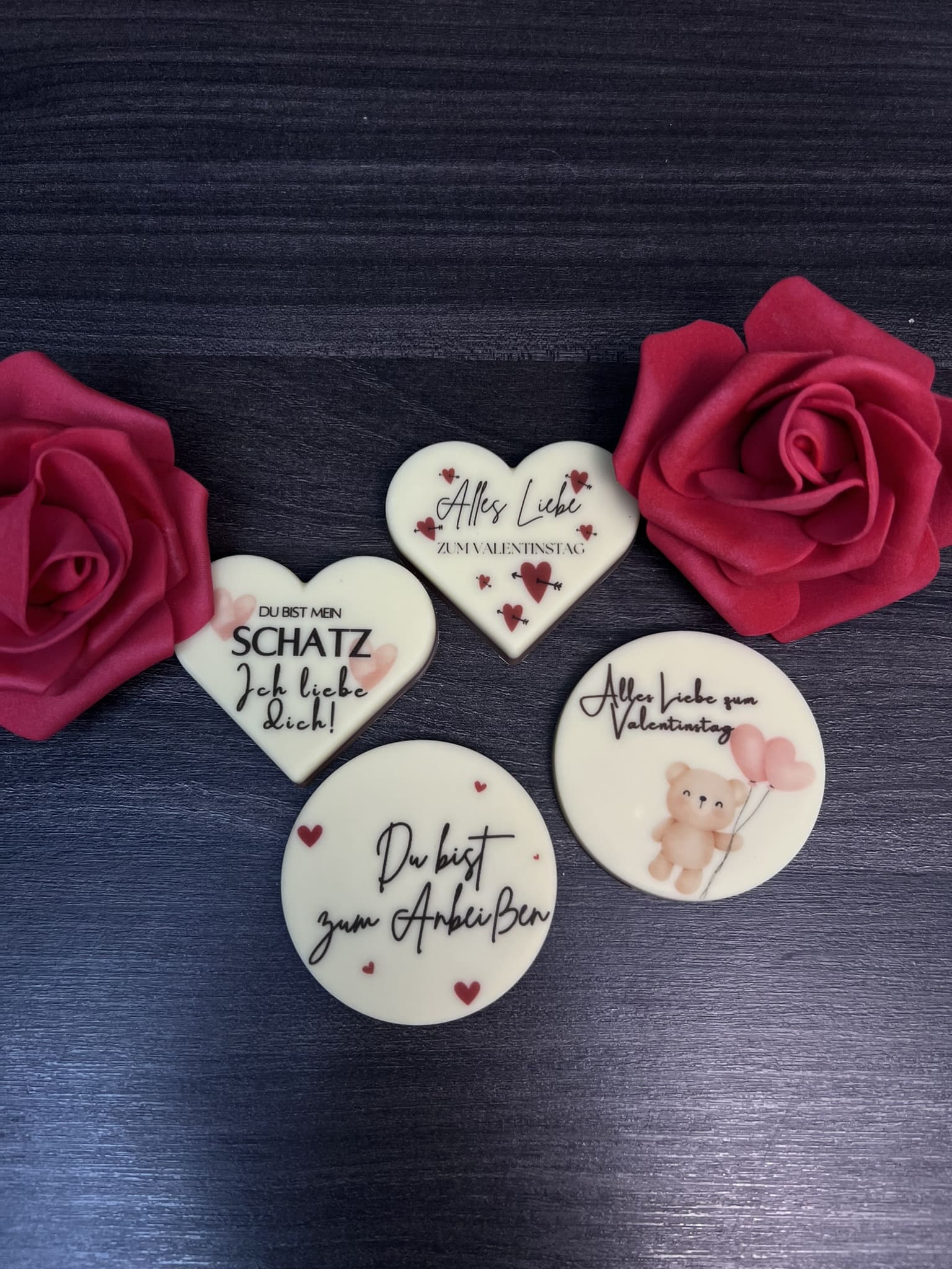 | Zutaten | Zucker, Kakaobutter, VOLLMILCHPULVER, Kakaomasse, Emulgator: SOJALECITHIN, natürliches Vanillearoma, Aroma, Farbstoffe: E160e, E132, E100, E120. |