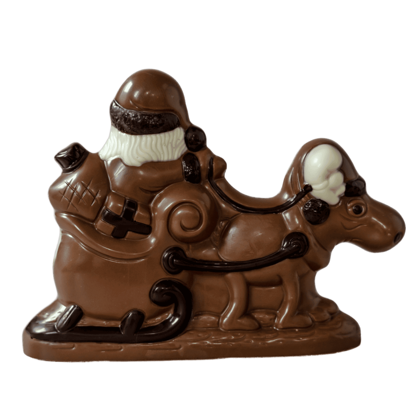 Weihnachtsmann mit Elch und Schlitten