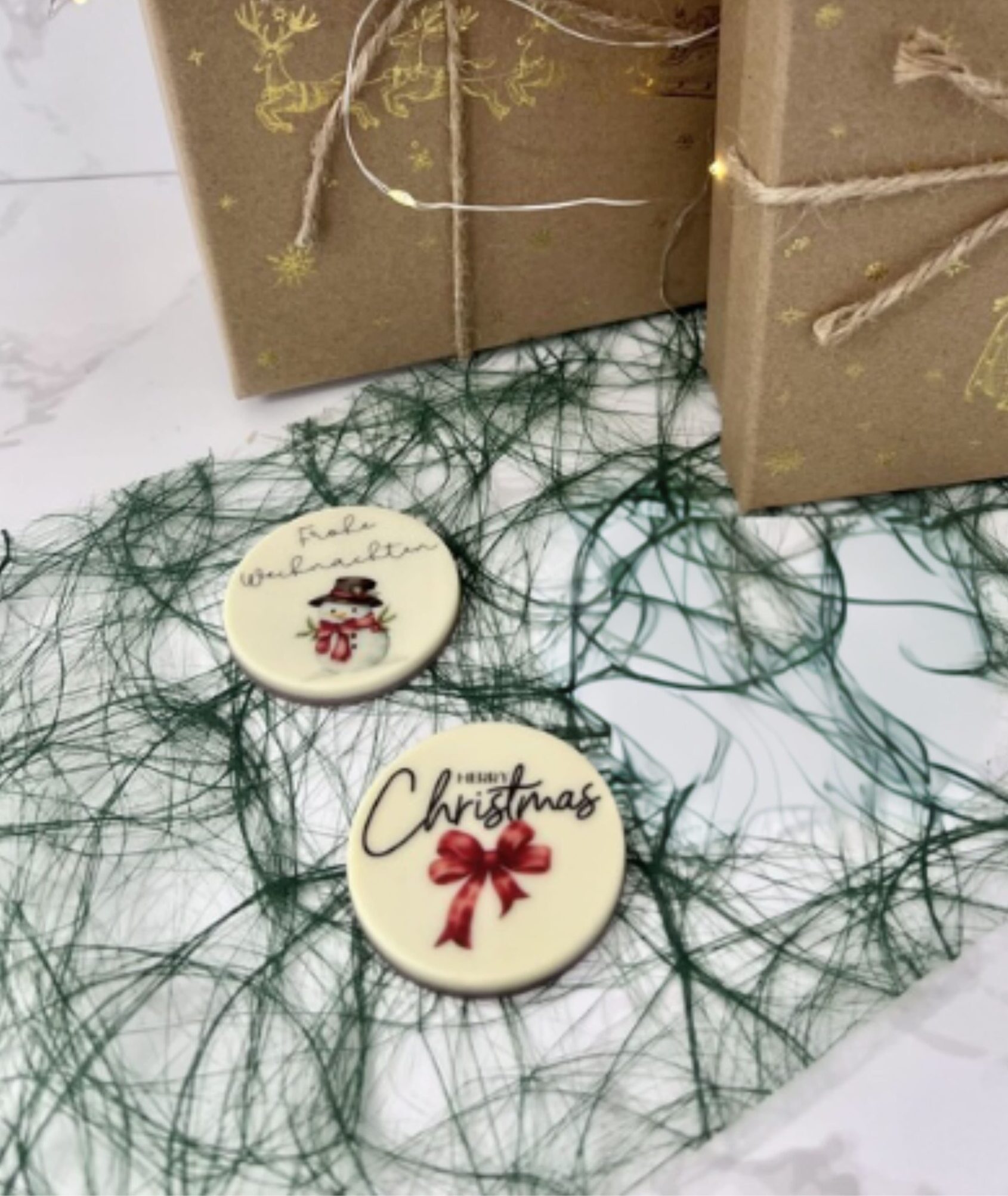 | Zutaten | Zucker, Kakaobutter, VOLLMILCHPULVER, Kakaomasse, Emulgator: SOJALECITHIN, natürliches Vanillearoma, Aroma, Farbstoffe: E160e, E132, E100, E120. |